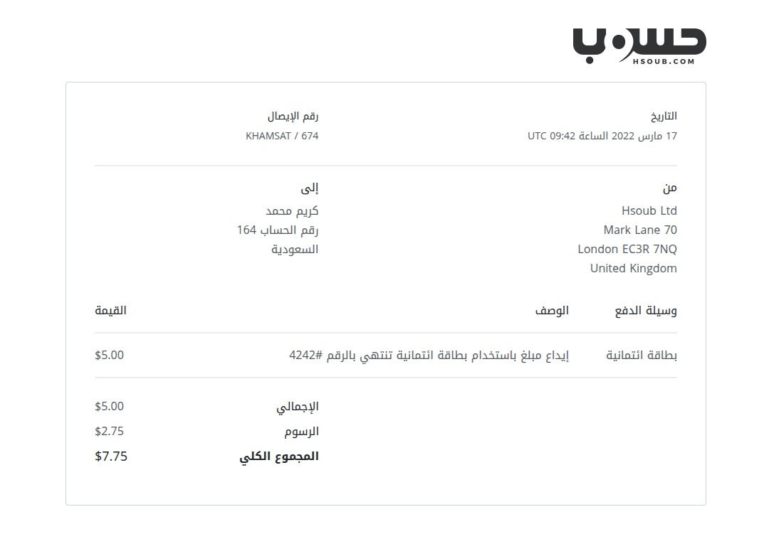 سيظهر الإيصال بهذا الشكل. يمكنك طباعته أو حفظه كملف Pdf بالضغط على الزر الأيمن للماوس واختيار طباعة.